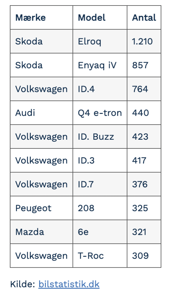 Ét mærke dominerer top 10-listen med hele fire modeller.