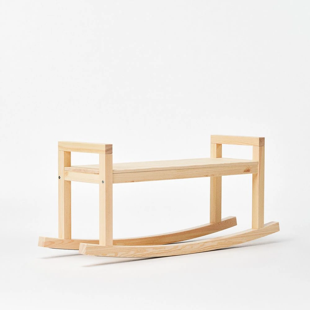 Den gør præcis det, den ser ud til – gynger blidt fra side til side – men fungerer samtidig fuldt ud som en klassisk bænk. Bænken er fremstillet i massivt fyrretræ.
