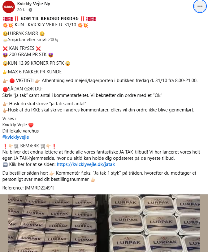 Det betyder, at man skal kommentere ‘ja tak’ og antal pakker på opslaget for at reservere sin ordre.
