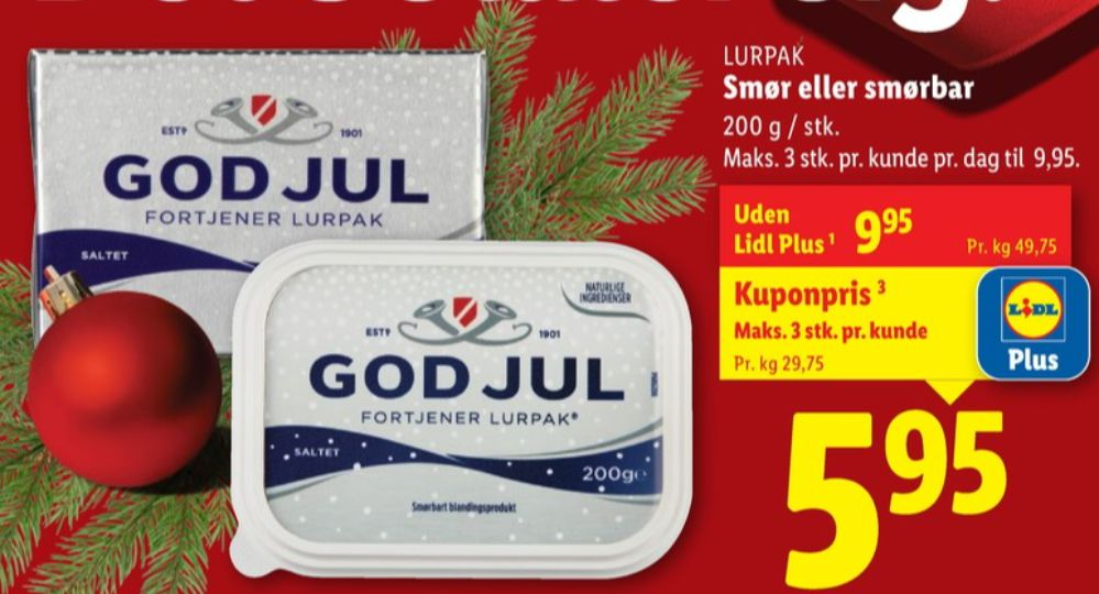 Lurpak er en af de varer, der plejer at få særlig opmærksomhed i december.