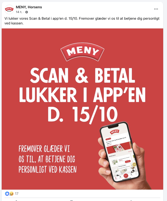 I kommentarfeltet på det opslag, som MENY i Solrød har lavet, ytrer en kunde sin klare holdning til, at ‘Scan & Betal’ lukker: