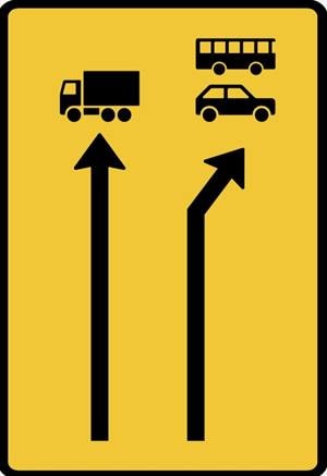 Alle trafikanter på vej sydpå ad E45 Sønderjyske Motorvej bliver mødt af nedenstående skilt, når de nærmer sig grænsen til Tyskland. Lastbiler skal fortsætte ligeud, alle biler og busser skal holde til højre og køre ind over rastepladsen Ellund Vest.