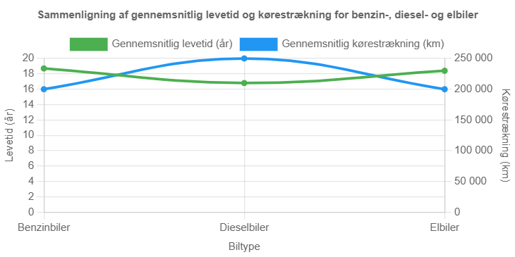 Levetid og kørestrækning for forskellige biltyper